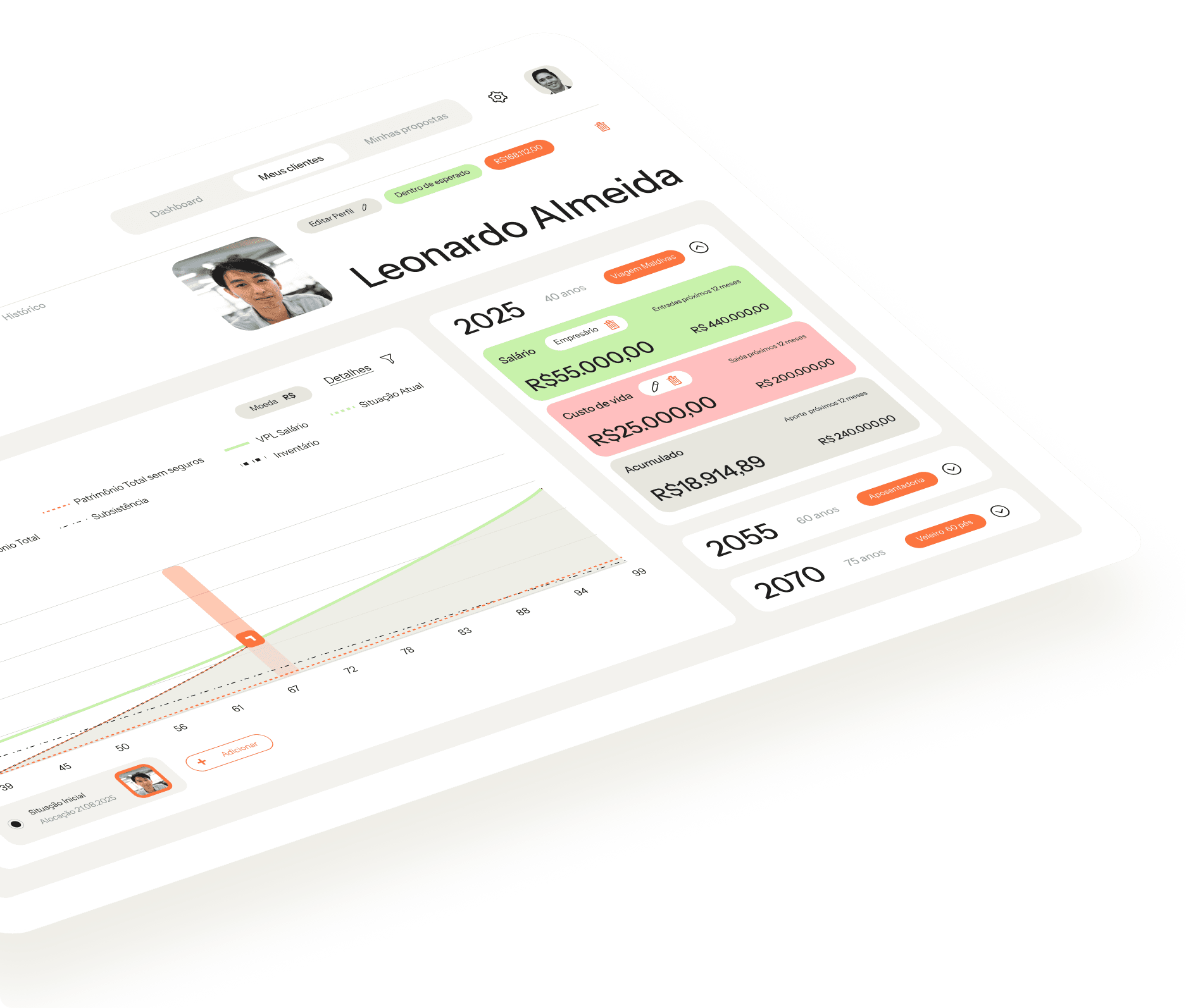 Aqui você visualiza sua vida em cenários, entende impactos e toma decisões de vida – e de investimentos – com mais confiança.
